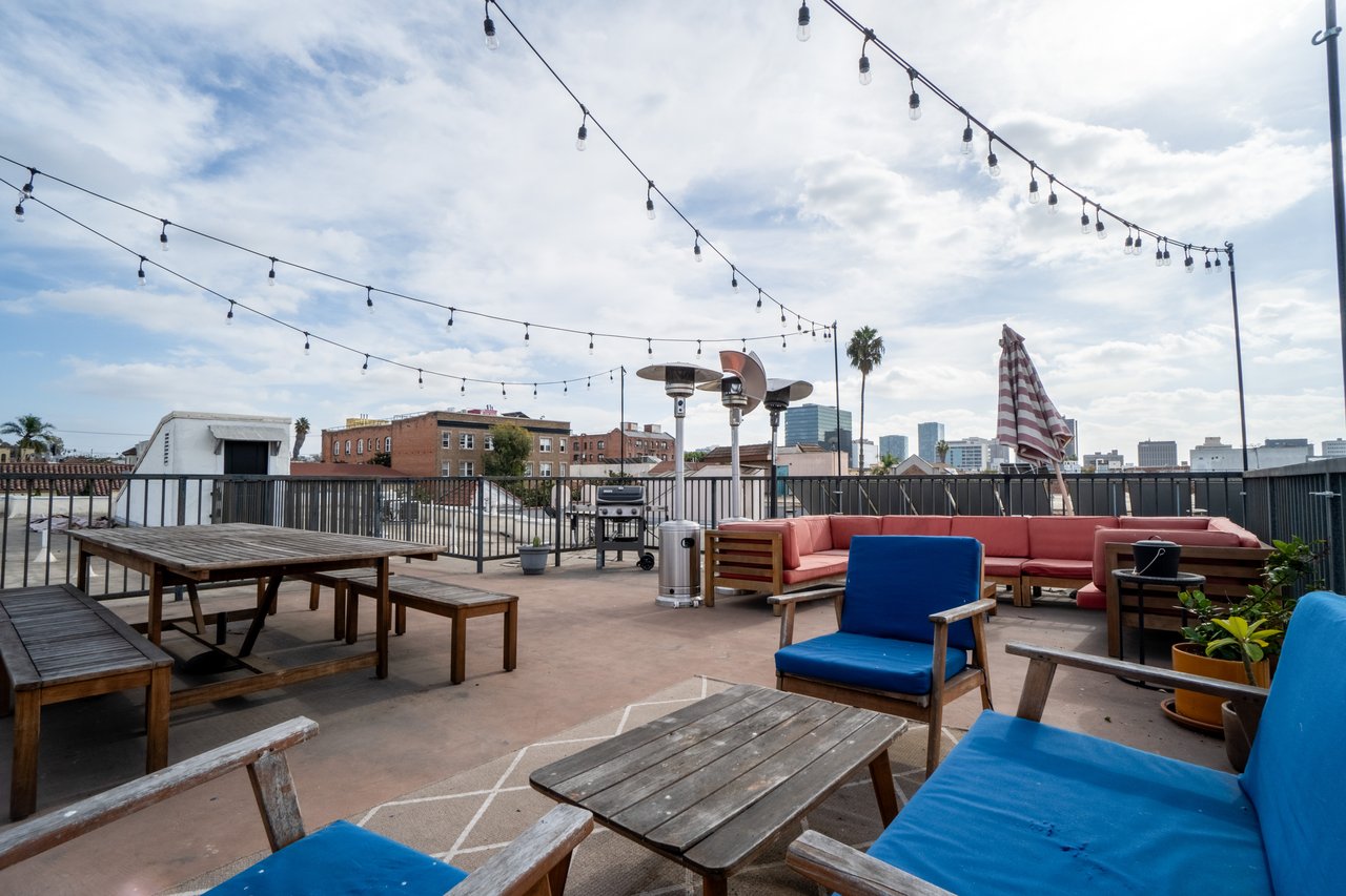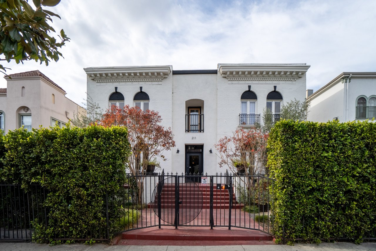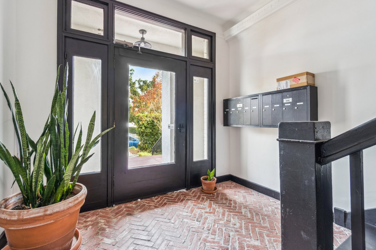 This bright and inviting front-facing one-bedroom upper unit is located in a beautifully restored Art Deco building that channels the timeless charm of New York. The unit offers abundant natural light and warmth, with large windows overlooking the vibrant surroundings. The welcoming communal rooftop deck and charming garden patio below create a perfect blend of comfort and style. The space is full of character, from the bold black and white checkered hallway to the sleek matte black door. Spanning over 700 square feet, the unit features high coved ceilings, exposed brick walls, and a cozy nook for a home office. Modern touches include designer lighting, matte white oak hardwood floors, and a convenient dining area for hosting friends.